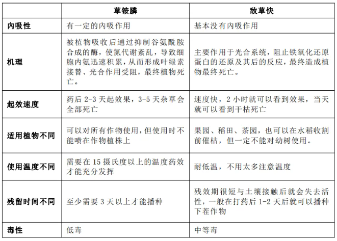 作为百草枯的替代品草铵膦和敌草快都是灭生性除草剂,两者有什么异同呢?